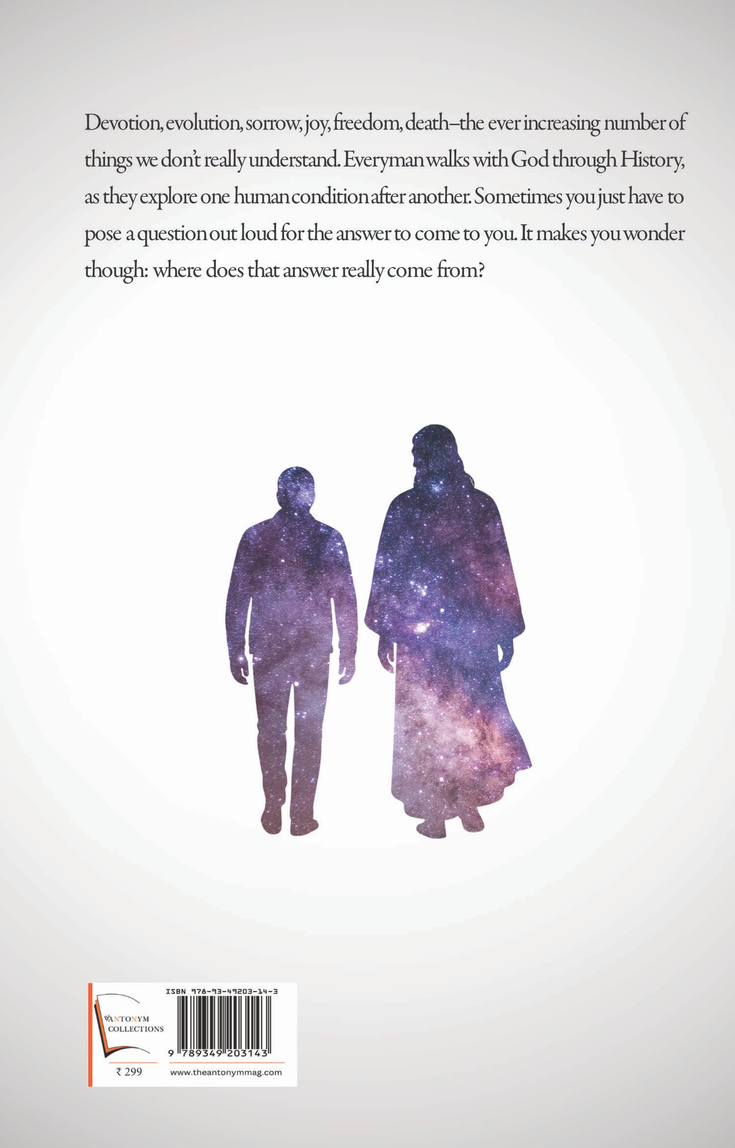 Devotion, evolution, sorrow, joy, freedom, death–the ever increasing number of things we don’t really understand. Everyman walks with God through History, as they explore one human condition after another. Sometimes you just have to pose a question out loud for the answer to come to you. It makes you wonder though: where does that answer really come from?