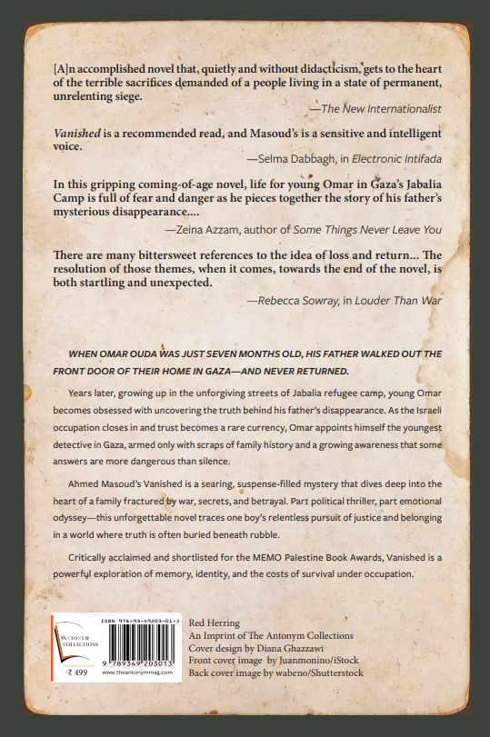 “Vanished takes the reader deep into Gazan society…. and the suspense is maintained until its final pages.” —The Tanjara “Masoud is skilful at building up suspense; he drops no early hints of what happened to Omar’s father.” —The Jordan Times